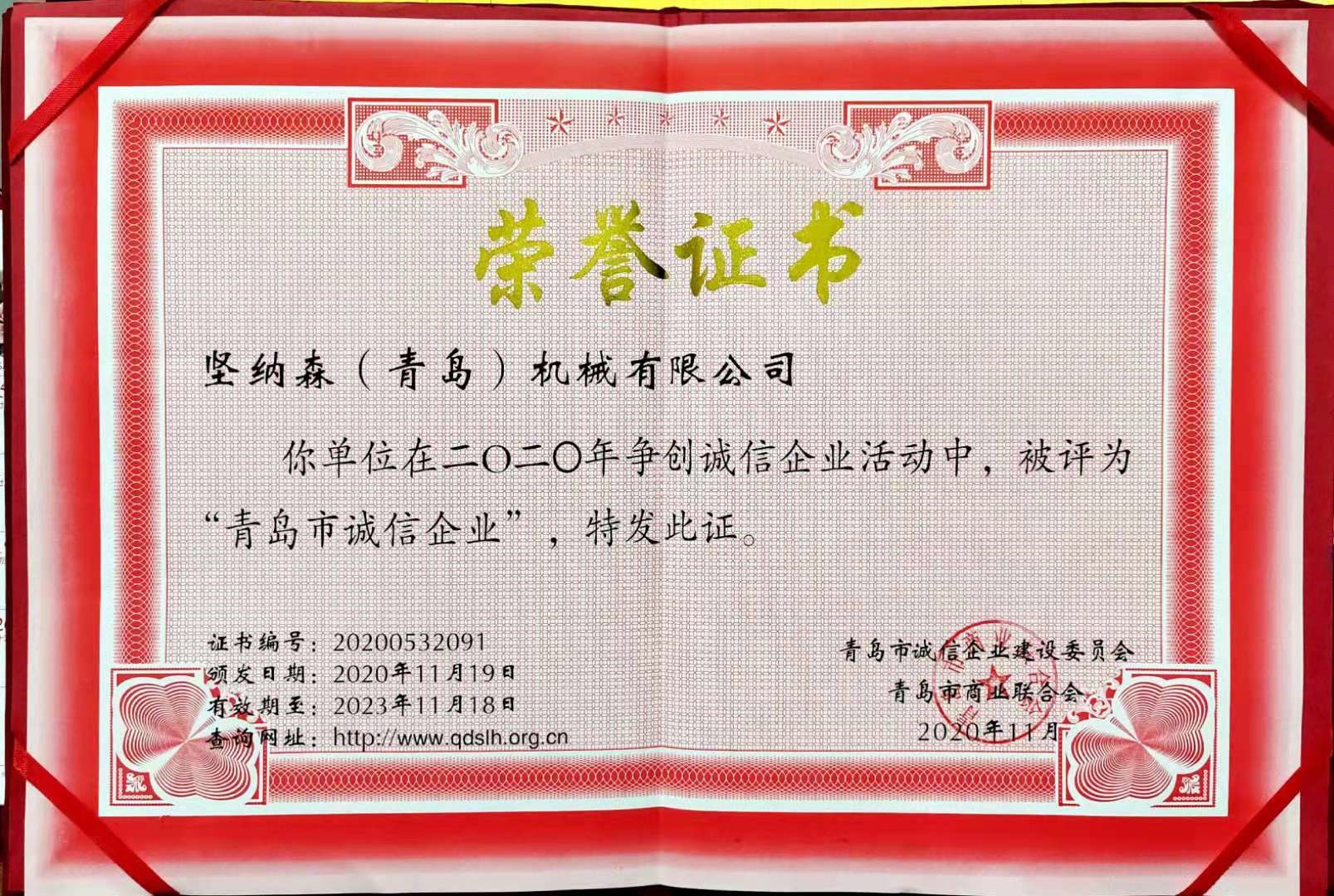 祝賀堅納森(青島)機械有限公司榮獲“誠信企業(yè)”