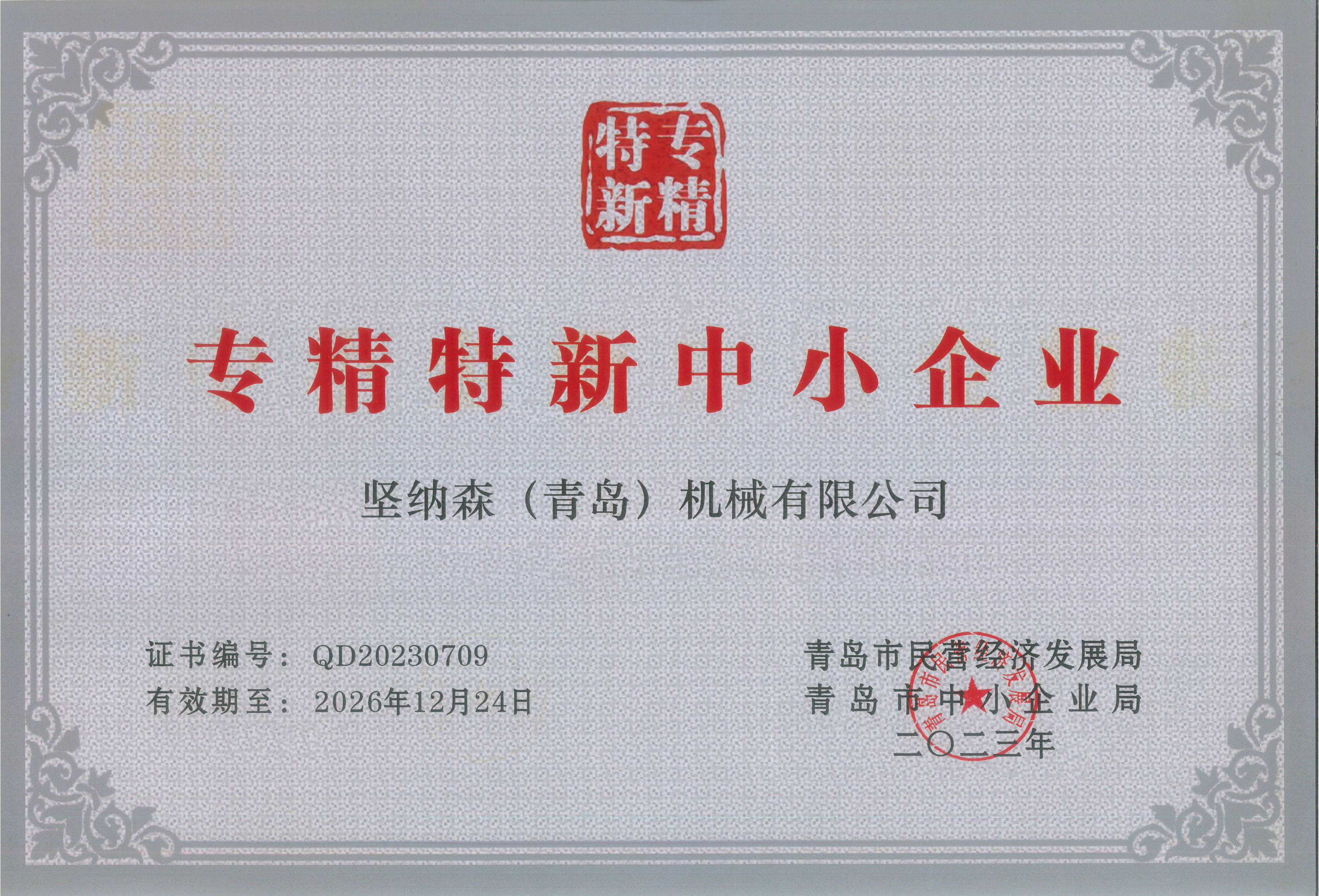 熱烈祝賀堅納森(青島)機械有限公司榮獲“專精特新”中小企業(yè)稱號!